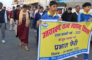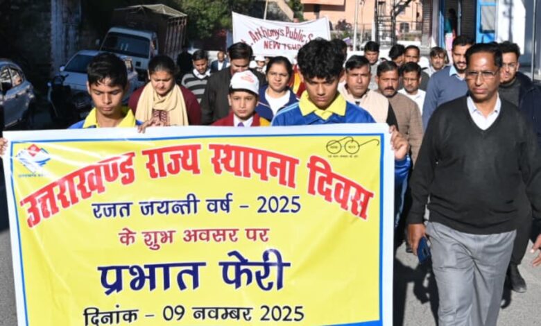 राज्य स्थापना दिवस के अवसर पर जिला प्रशासन टिहरी गढ़वाल द्वारा आज रविवार को प्रभात फेरी का आयोजन किया गया। इस दौरान नगर पालिका परिषद अध्यक्ष मोहन सिंह रावत, जिलाधिकारी टिहरी गढ़वाल नितिका खण्डेलवाल, मुख्य विकास अधिकारी वरुणा अग्रवाल, जिला विकास अधिकारी मो. असलम, प्रभारी मुख्य शिक्षा अधिकारी वी.पी. सिंह, विभिन्न विद्यालयों के छात्र- छात्राओं, अध्यापकगणों, नगर पालिका, पुलिस एवं अन्य विभागों के अधिकारी, कर्मचारियों द्वारा प्रतिभाग किया गया।